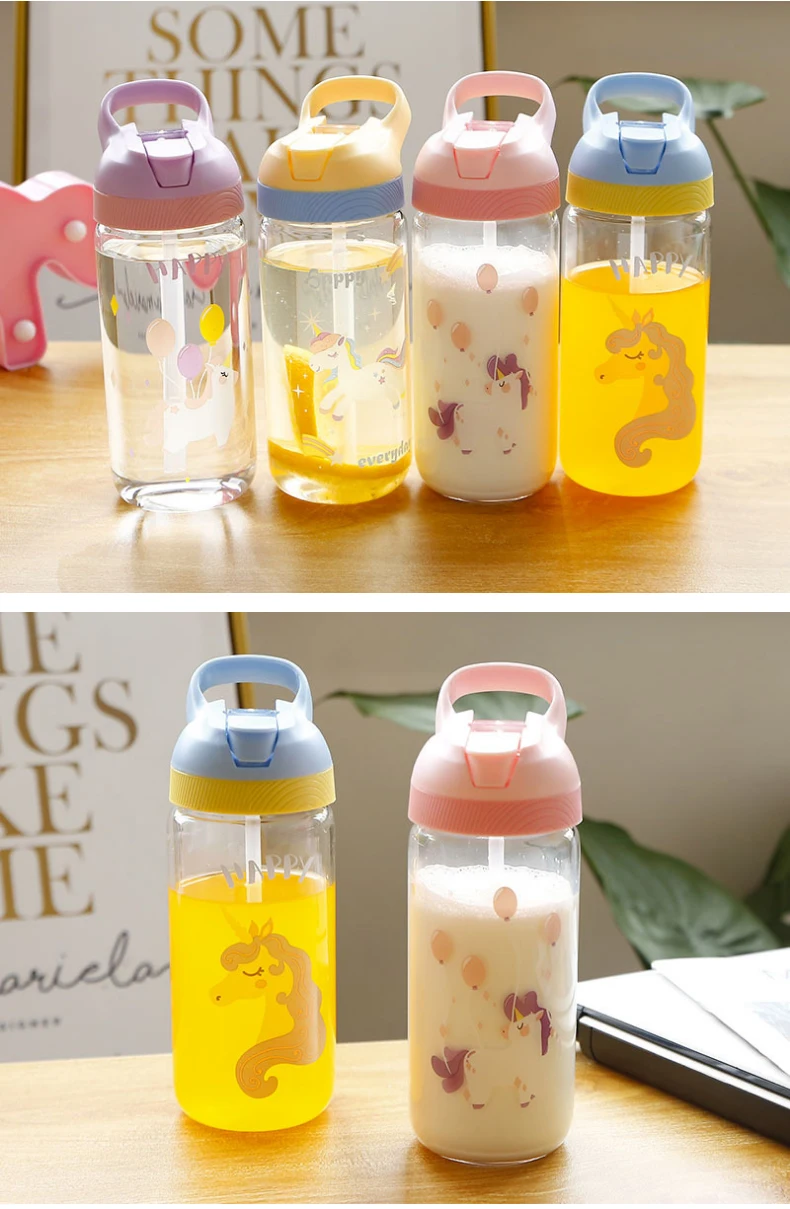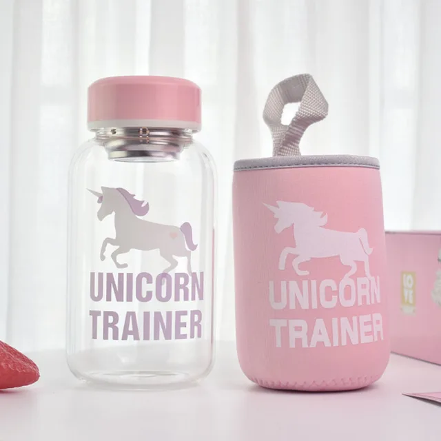 Bxlyy 4 Color Unicorn Glass Water Bottle Cute Student Simple Portable Straw Transparent Cartoon Glass Bottle Sports Shaker 7z Shop On Ali