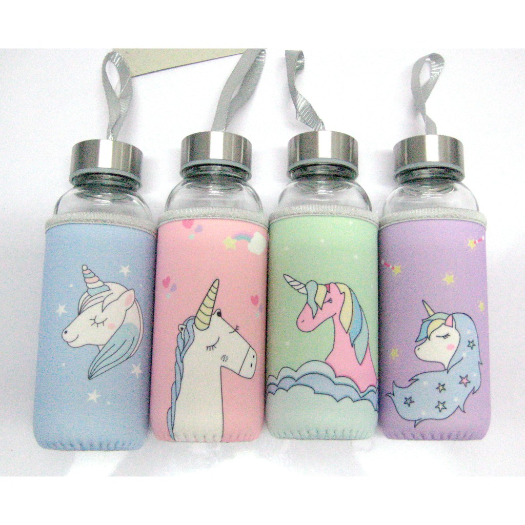 Cute Unicorn Glass Portable Water Bottle Shopee Malaysia