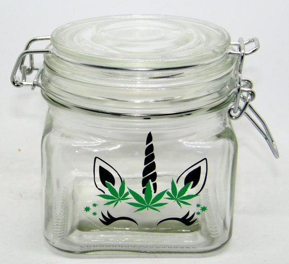 Unicorn Weed Herb Pot Stash Container Glass Jar Flip Top Etsy