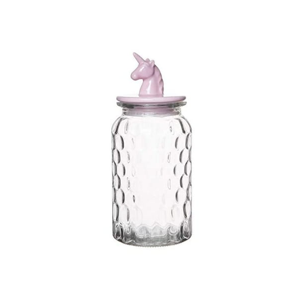 Large Food Storage Rain Drop Pattern Glass Jar Canister With Pink Unicorn Shaped Ceramic Airtight Lid 43 25 Ounces Walmart Com Walmart Com