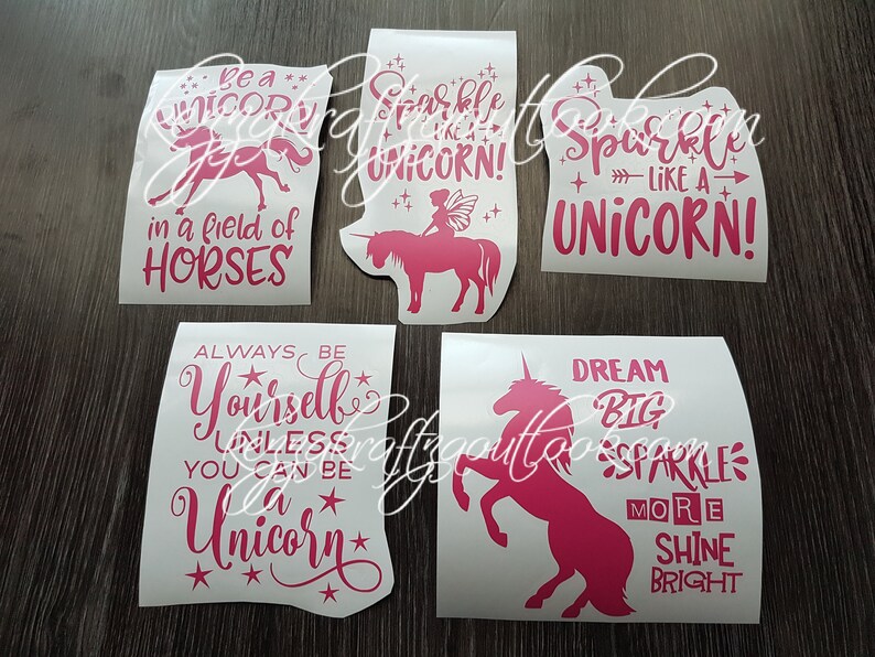 7cm Unicorn Silhouette Stickers Set Any Colour Laptop Glass Car Vinyl Wall Pink
