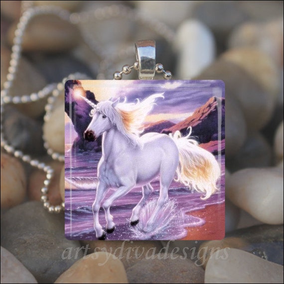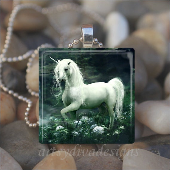 Unicorn Necklace Glass Tile Necklace Glass Tile Jewelry Etsy