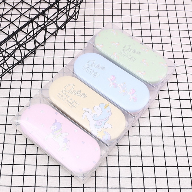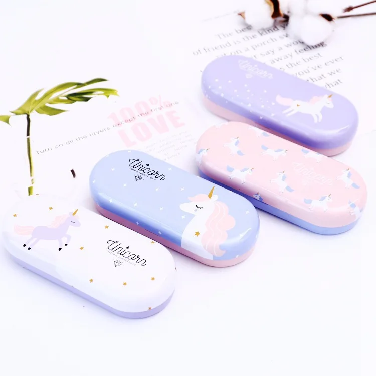Unicorn Tin Glasses Case Desktop Storage Box School Office Supply