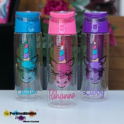 Named Glitter Unicorn Face Water Fruit Infusion Drink Bottle 700ml Ebay