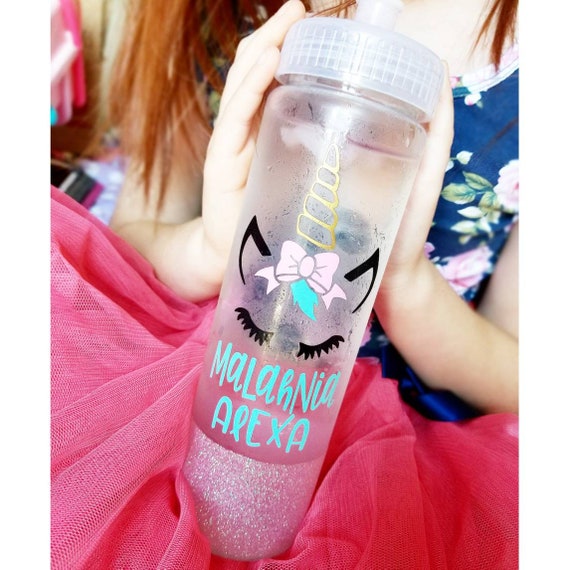 Personalised Named Glitter Unicorn Water Drink Bottle 700ml Ebay