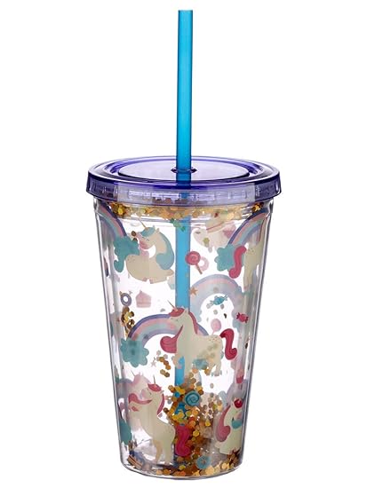 Buy Generic Fun Unicorn Design Glitter Double Walled Cup With Lid And Straw Online At Low Prices In India Amazon In