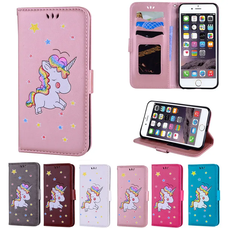 Rainbow Unicorn Glitter Leather Case For Iphone X 8 7 7plus Flip