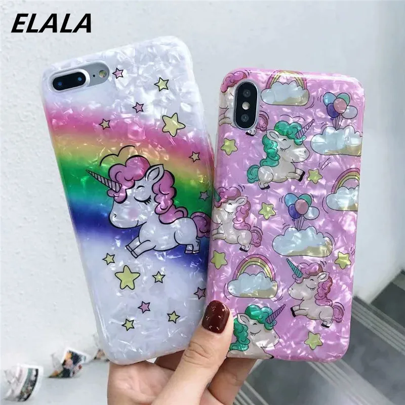 Colorful Marble Case For Iphone 7 8 Plus Epoxy Silicon Unicorn