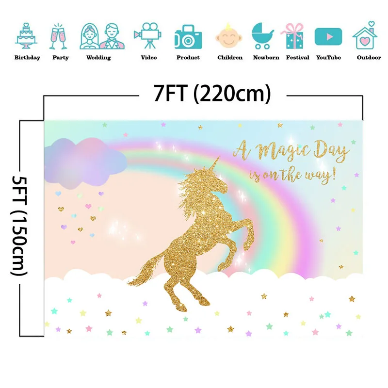 Magical Rainbow Gold Unicorn Backdrop Glitter Unicorn Birthday