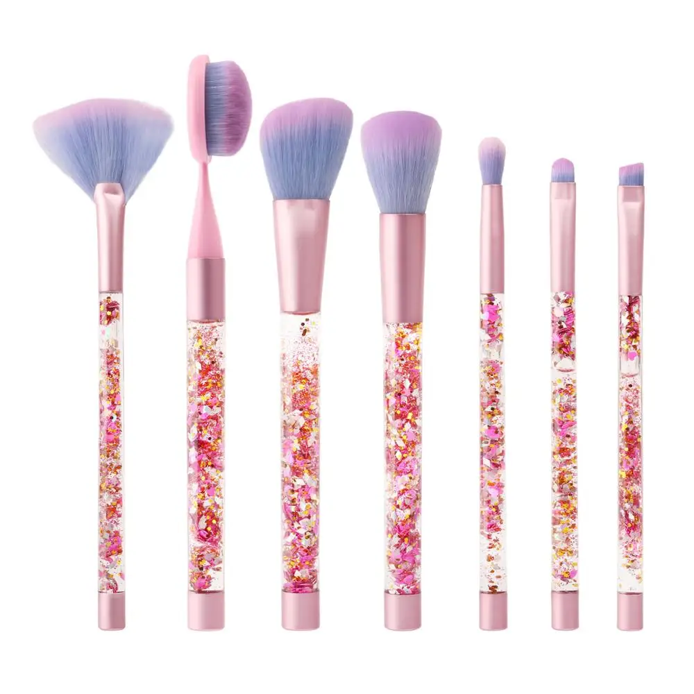 New 7pcs Unicorn Glitter Liquid Handle Makeup Brush Set Foundation