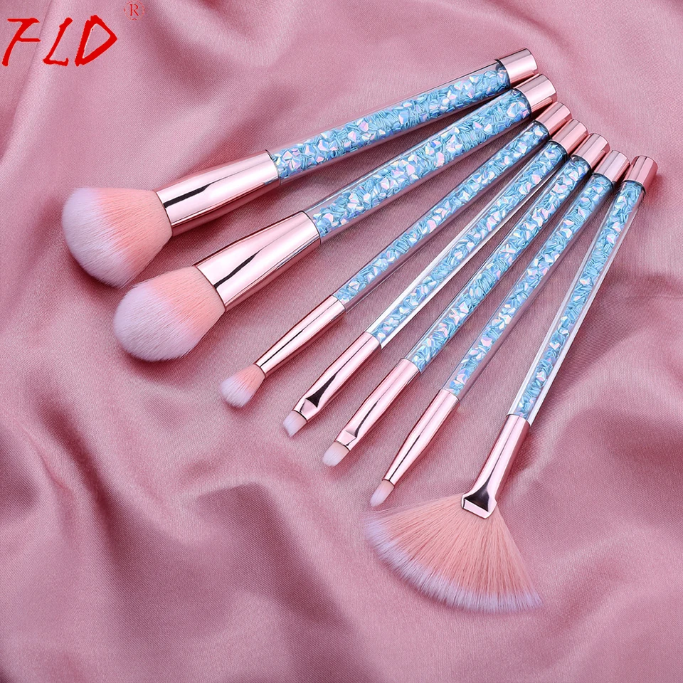 Fld 7 Pcs Unicorn Glitter Makeup Brushes Set Diamond Crystal