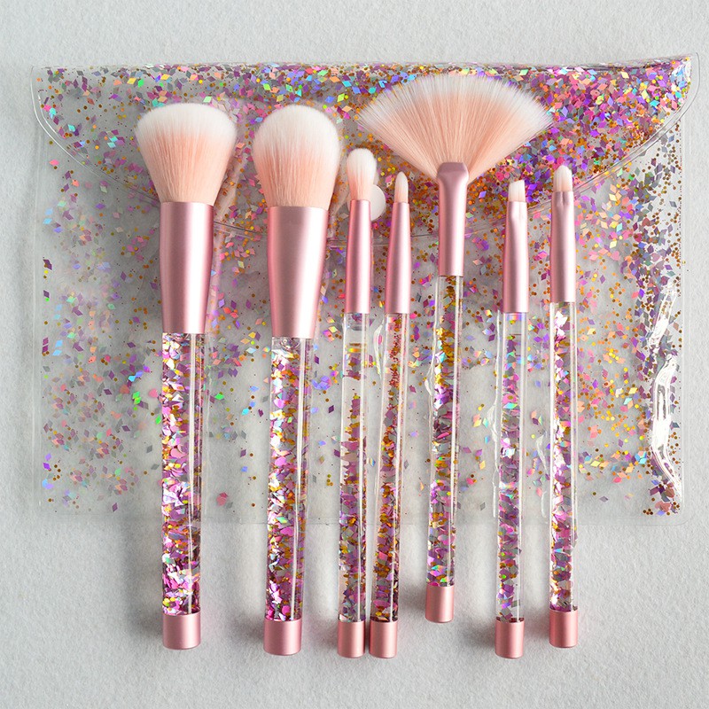 7 Pcs Aquarium Paillette Glitter Makeup Brushes Set Unicorn
