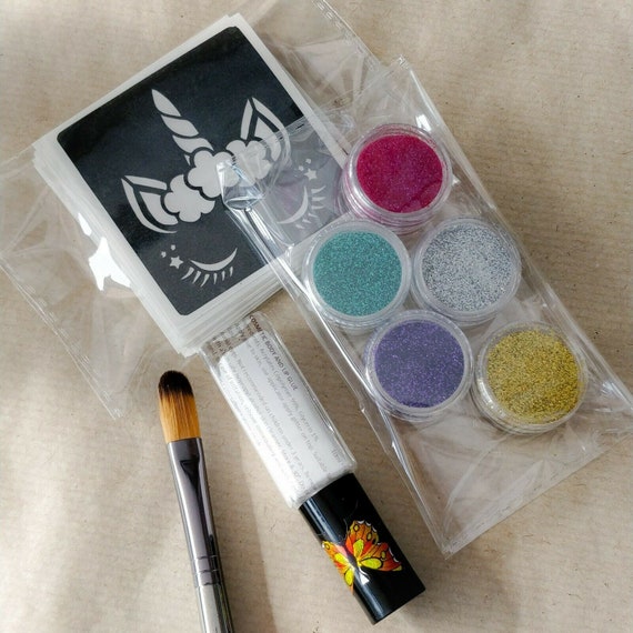 Unicorn Glitter Tattoo Stencil Set Etsy