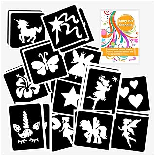 Glitter Tattoo 20 Girls Mixed Stencils Heart Unicorn Mermaid