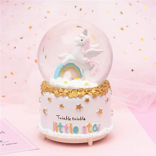 Alvar Snow Globe Music Box Unicorn Glow Turn Perfect For