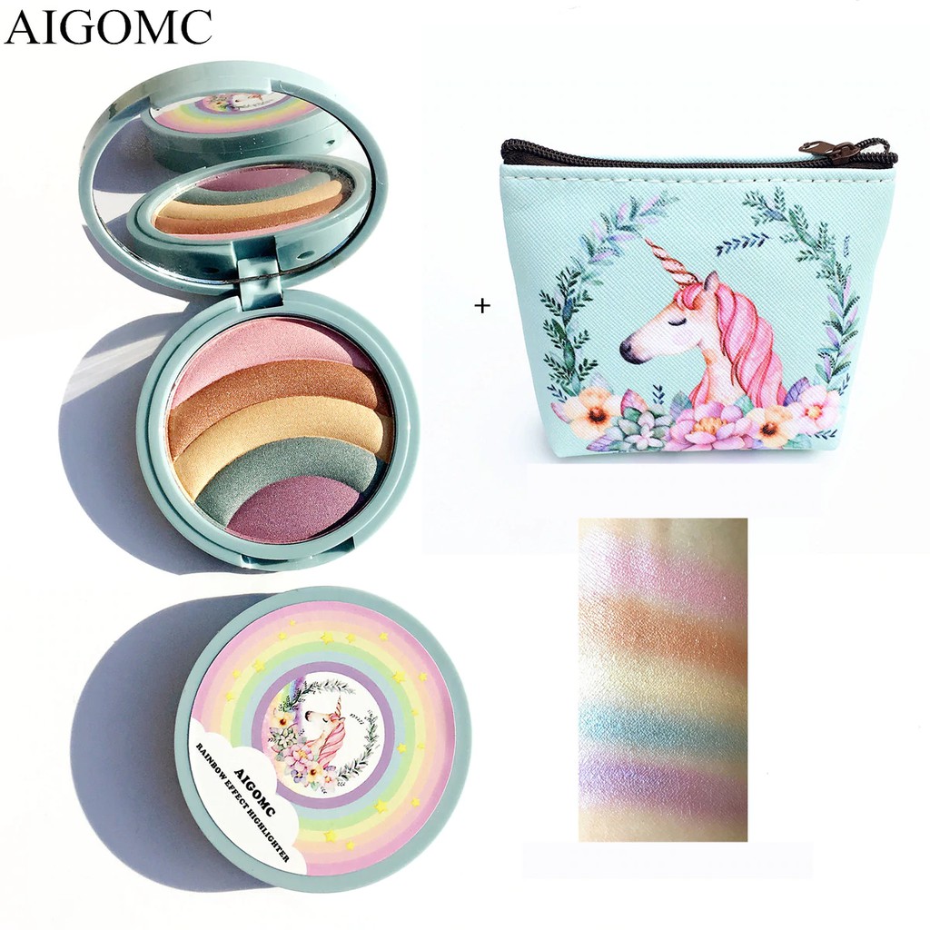 Aigomc Unicorn Glow Kit Highlighter 5 Colors Highlighter Palette Face Contour Rainbow Shopee Indonesia