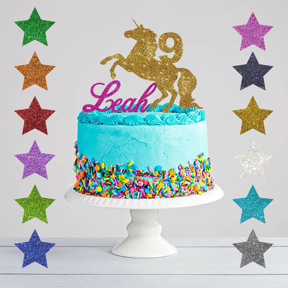 Personalised Unicorn Glitter Cake Topper Any Name Any Age Etsy