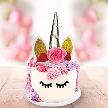 Unicorn Cake Topper Kit With Unicorn Horn Ears And Eyelash