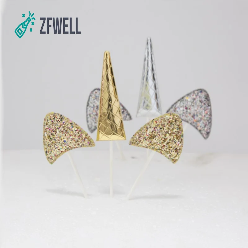 Buy Gold Unicorn Horn Ears Cupcake Topper Birthday Cakes