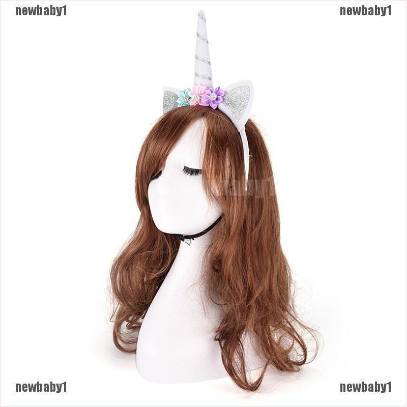New Unicorn Glitter Hair Hoop Gold Horn Ears Flower Headband