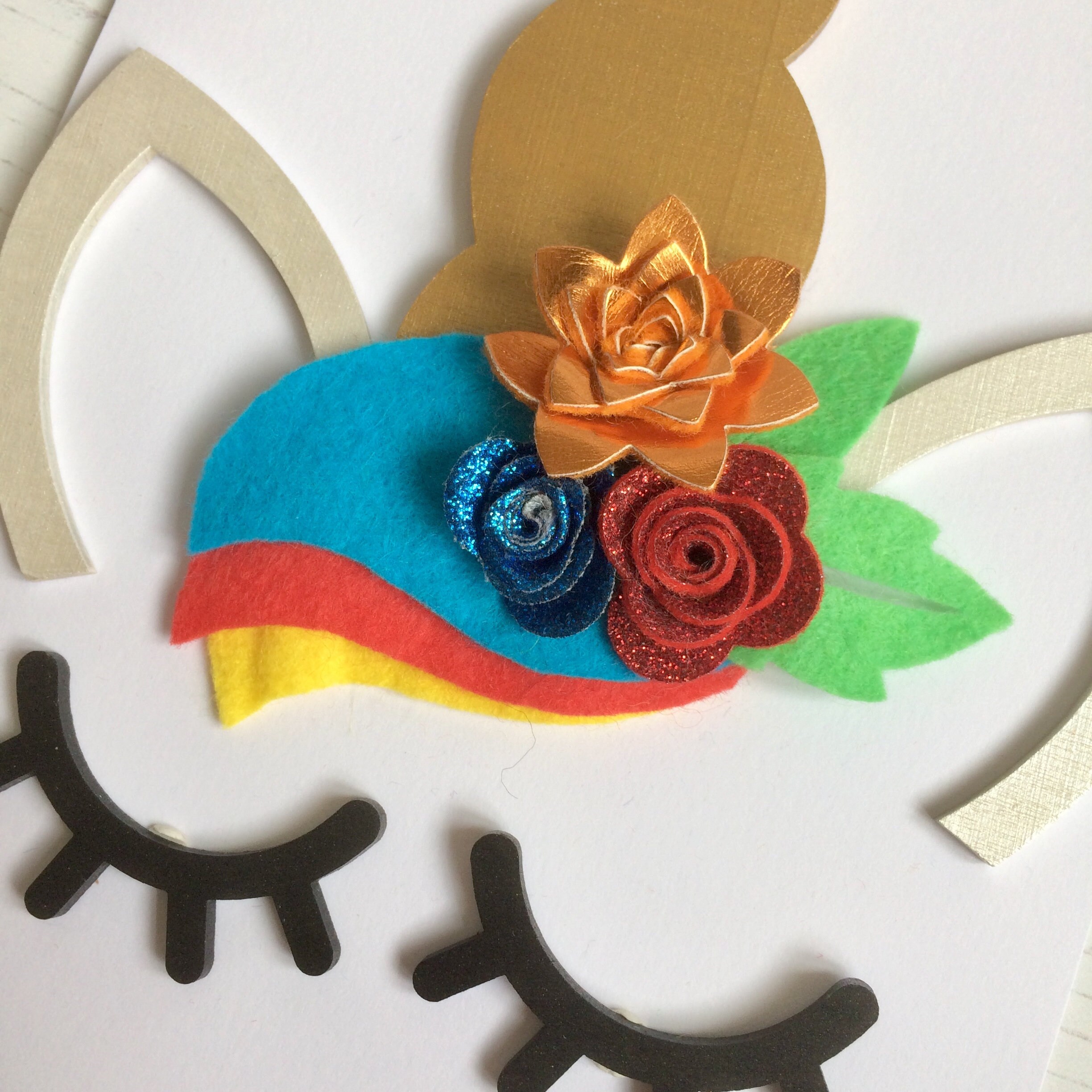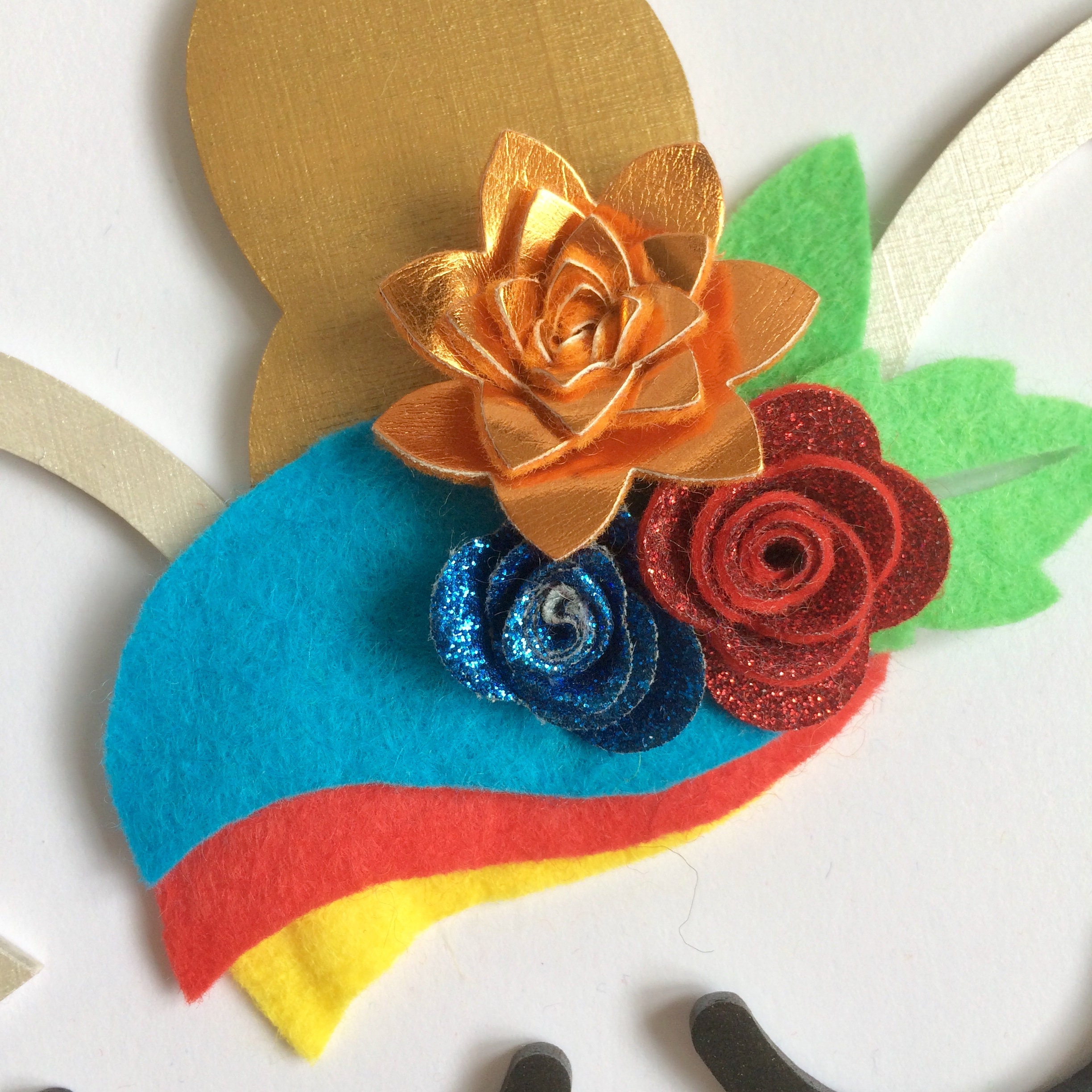 Handmade Gold Unicorn Birthday Cake Toppers Horn Ears And Flowers
