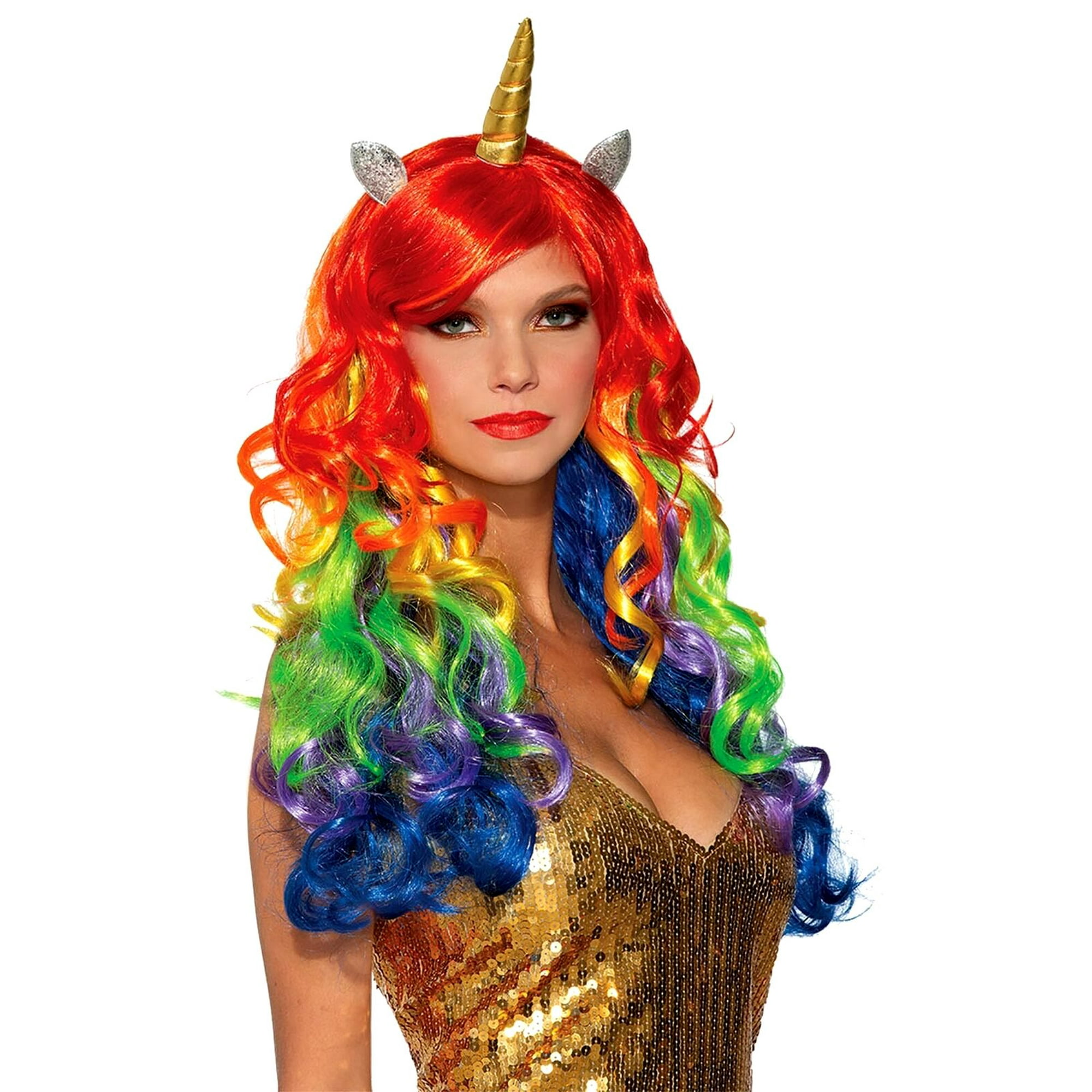 Rainbow Unicorn Wig W Gold Horn Ears Halloween Costume Accessory
