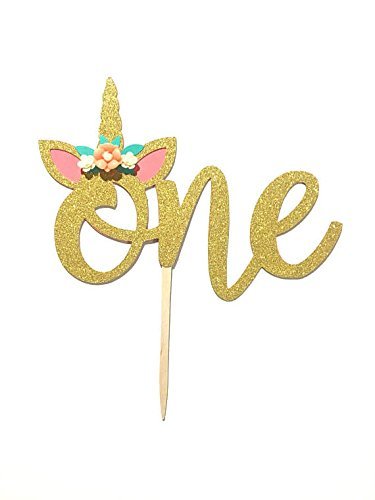 Amazon Com 1 Pc Unicorn Horn Ear One Gold Glitter Cake Topper For