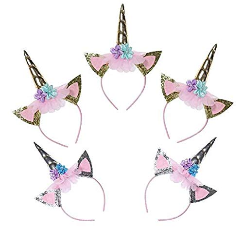 Unicorn Party Favor Supplies 5 Pack Unicorn Gold Silver Horn