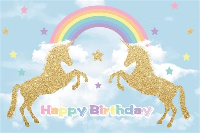 Laeacco Gold Unicorn Party Backdrops Baby Birthday Rainbow Star