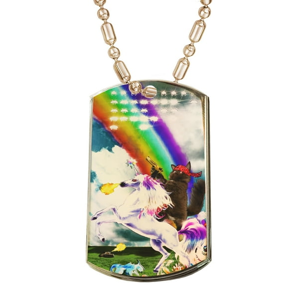 Kuzmark Gold Pendant Dog Tag Necklace Kitty Cat Gold Gun Rainbow