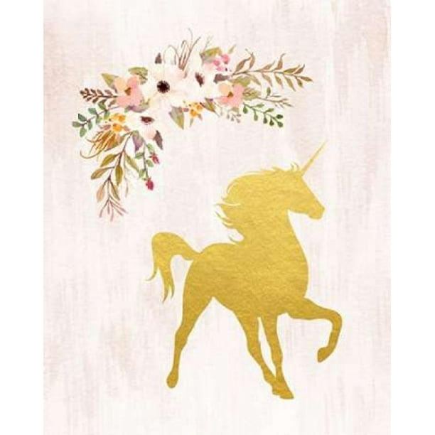 Posterazzi Gold Unicorn Floral Poster Print By Tara Moss