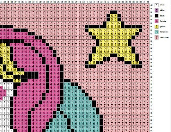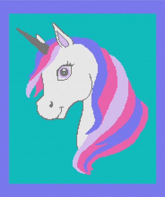Pink Unicorn Head Crochet Afghan Pattern Graph Cross Stitch