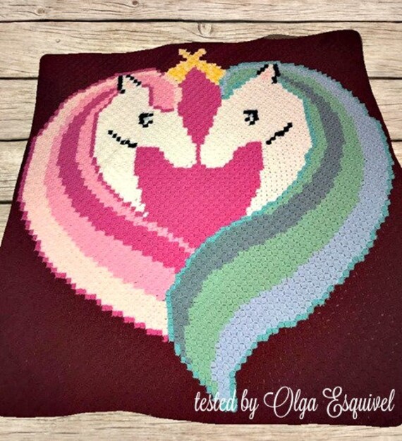 Unicorn Love Afghan C2c Crochet Pattern Written Row Counts Etsy