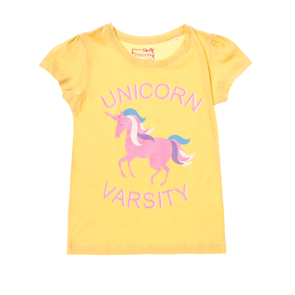 Justees Girls Ninos Unicorn Varsity Graphic Tee In Yellow