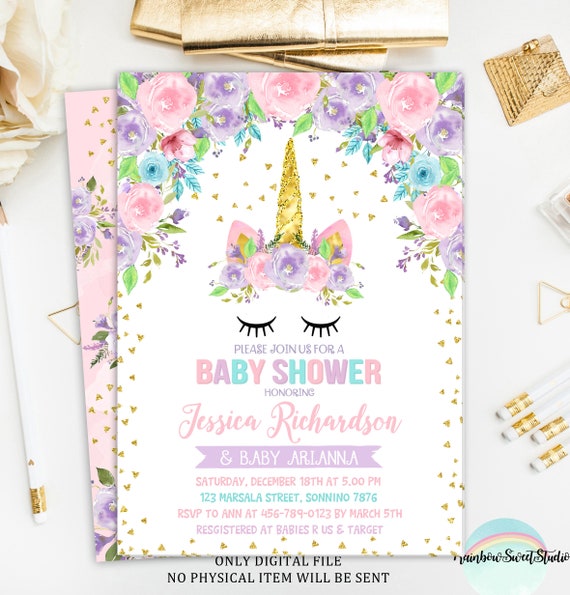 Unicorn Baby Shower Invitation Unicorn Floral Baby Shower Etsy