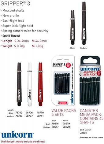 Unicorn Gripper 3 Dart Shafts Dart Stems Medium Short Ebay