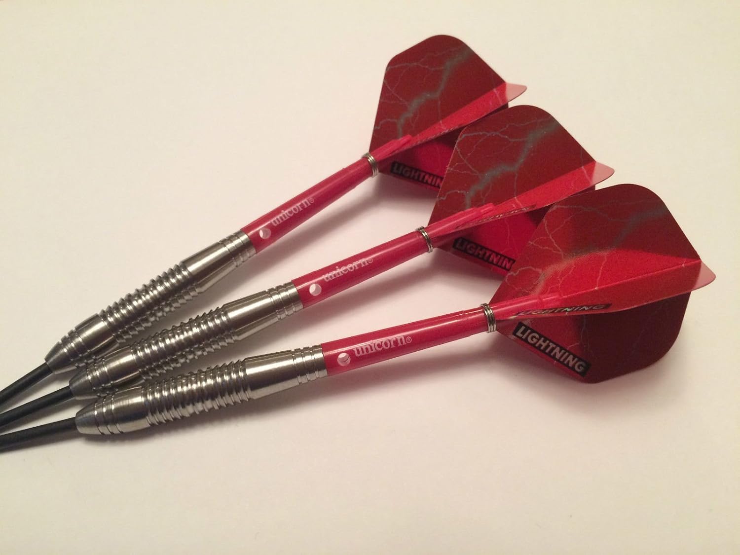 24g 90 Tungsten Mega Grip Red Lightning Darts Set Unicorn