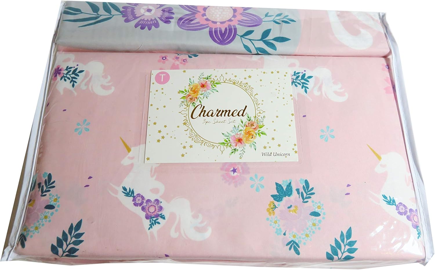 Amazon Com Charmed Pink And Grey Wild Unicorns On Delicate Pink And Floral Background Twin Clothing