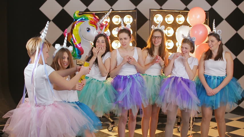 Group Of Bride Friendgirls In A Fairy Unicorn Costumes Colorful