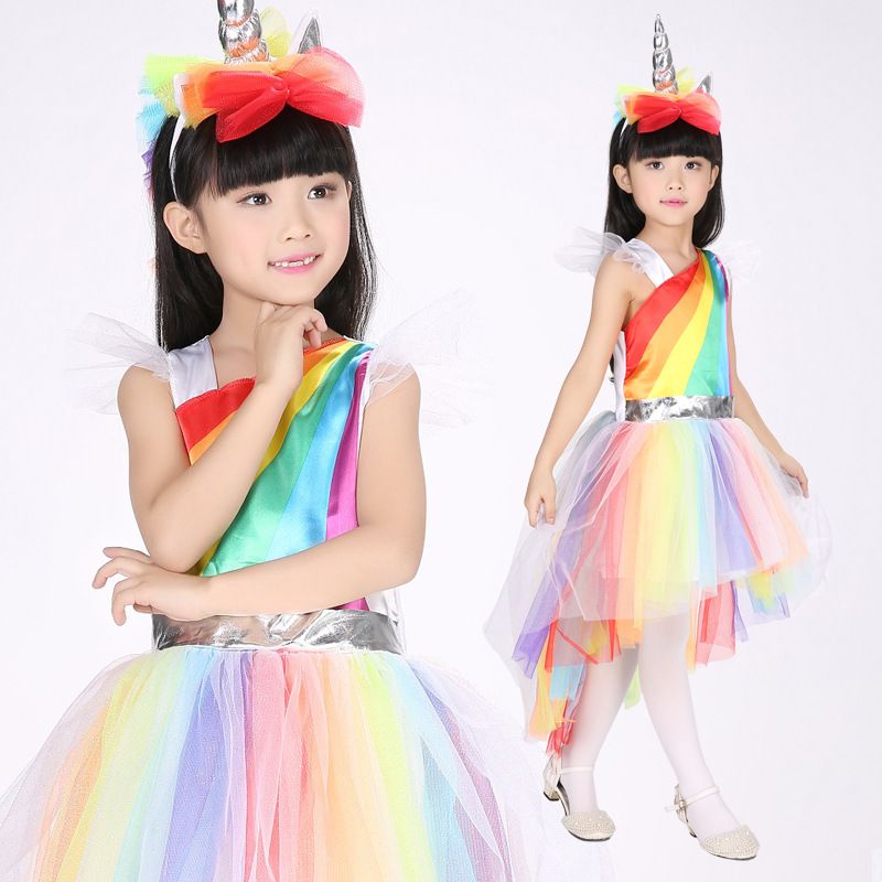 Girl Rainbow Unicorn Dress Halloween Cosplay Princess Fancy