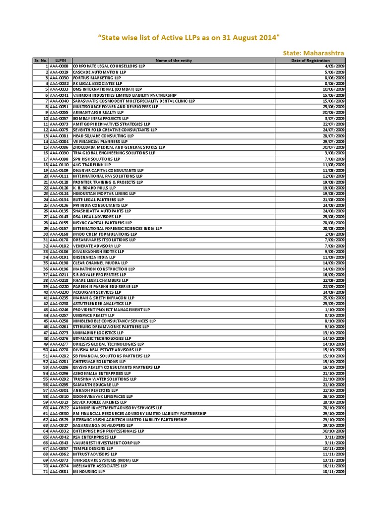 Maharashtra Llp Limited Liability Partnership Private Law