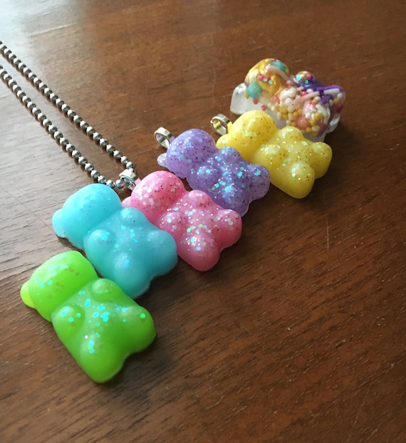 Gummy Bear Glitter Resin Necklace For Kids Unicorn Pink Etsy