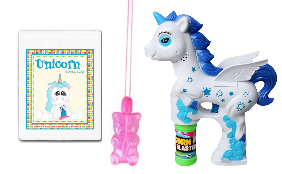 White Blue Unicorn Light Sound Toy Bubble Blaster Gun Gummy
