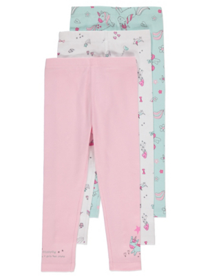 Unicorn Print Leggings 3 Pack Kids George