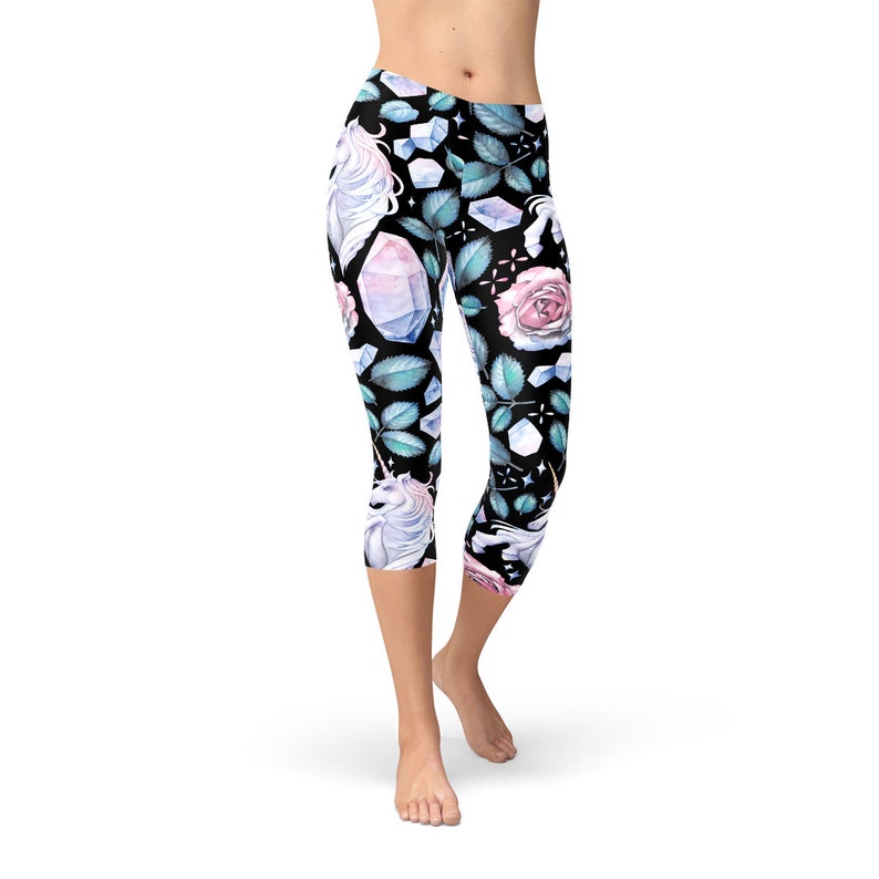 Unicorns Crystals Roses Capri Leggings Unicorn Womens Capri Etsy