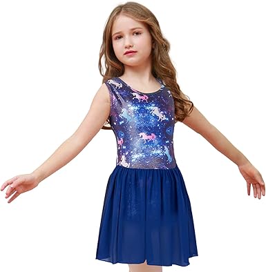 Amzbarley Girls Unicorn Ballet Leotard Dress With Tutu Skirt