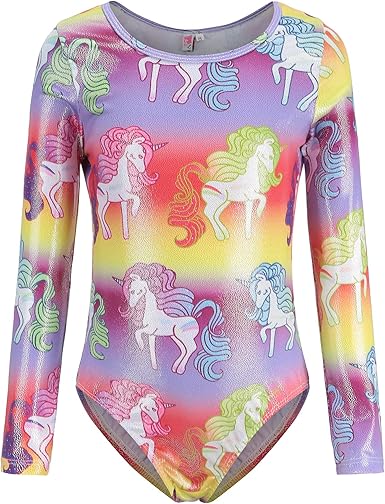 Jxstar Girls Gymnastics Leotard Unicorn Printed Long Sleeves