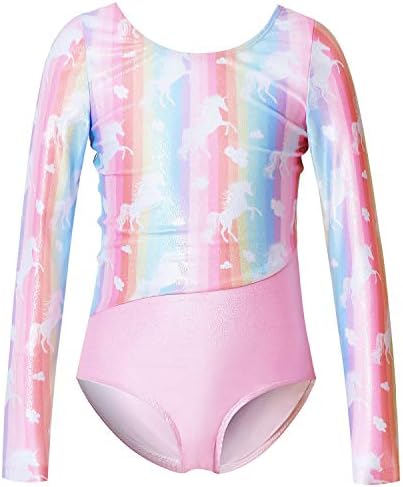 Amazon Com Jxstar Girls Long Sleeve Gymnastics Leotards Kids Sparkle Unicorn Outfit Clothes Clothing