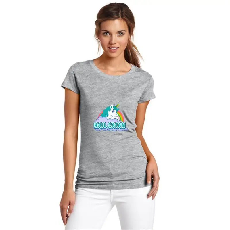 Unicorn Hail Satan Death Metal Rainbow Funny Shirt Ladies Tee