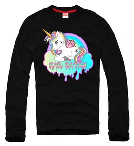 E1syndicate Long Sleeved T Shirt Unicorn Hail Satan Manga Devil